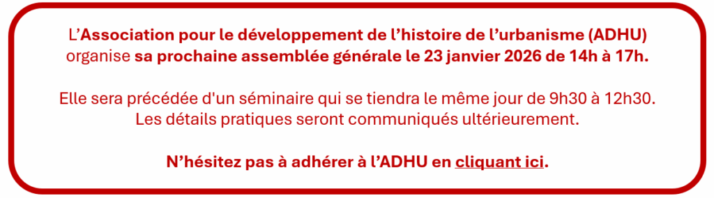 Elle a été précédée d’un séminaire de travail sur une des pistes d’action de l’ADHU intitulé « L’histoire de l’enseignement de l’urbanisme. Un chantier ».