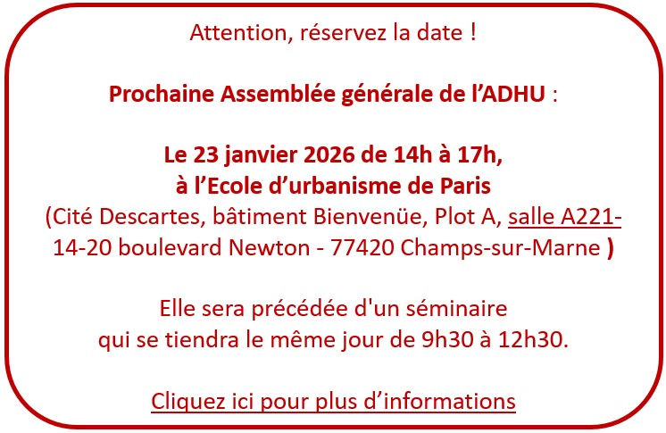 Elle a été précédée d’un séminaire de travail sur une des pistes d’action de l’ADHU intitulé « L’histoire de l’enseignement de l’urbanisme. Un chantier ».